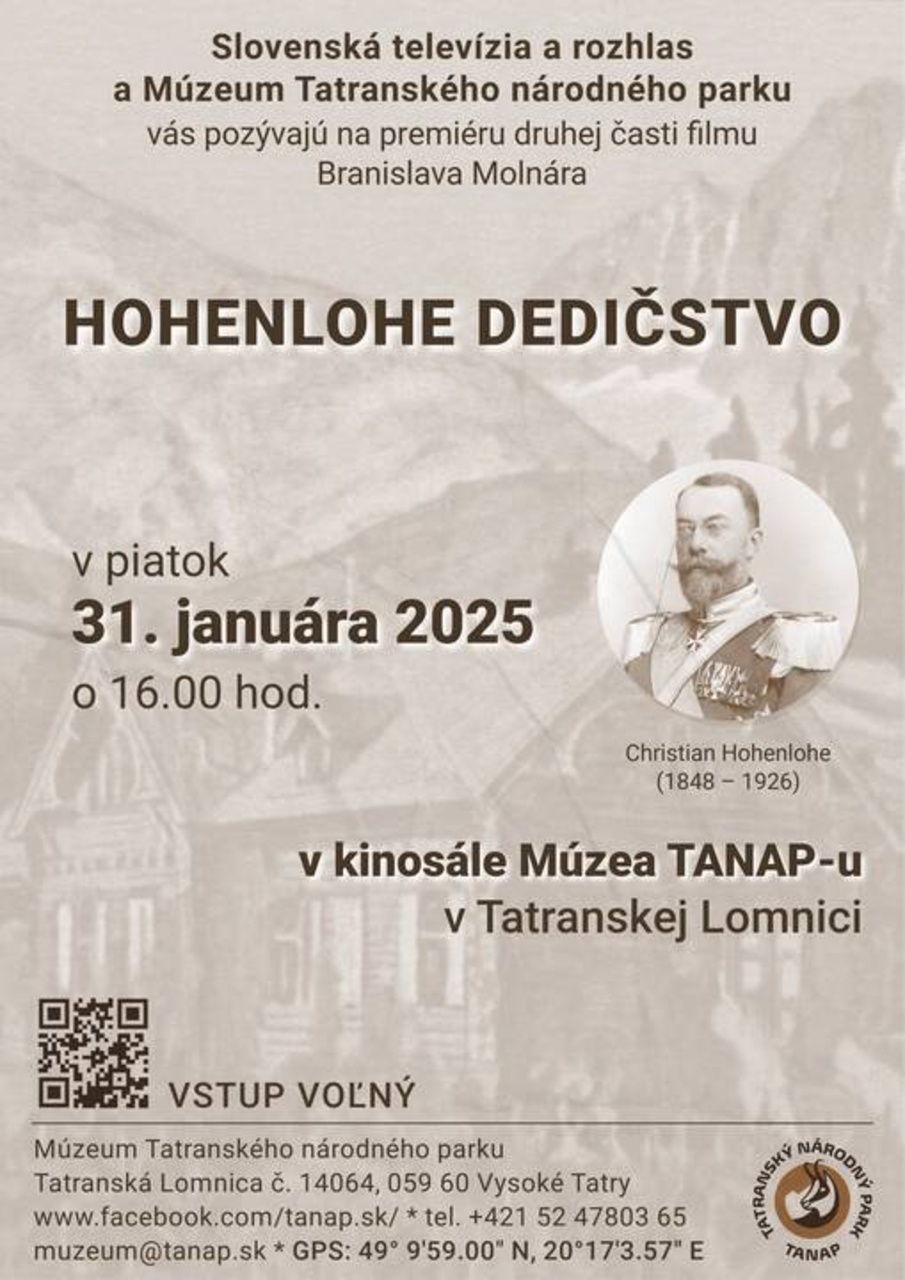 A „Dedičstvo Hohenlohe” (Hohenlohe öröksége) egy szlovák dokumentumfilm, amely a Belianske-Tátra-i hegyvidéket mutatja be a hegyvidéki kultúra és a természeti örökség szempontjából. A film a néhai Christian Hohenlohe herceg szellemiségét követi nyomon, miközben a természeti környezet változásait figyeli, összehasonlítva a múltat a jelennel. A filmet a szlovákiai RTVS sugározta. [bezár]